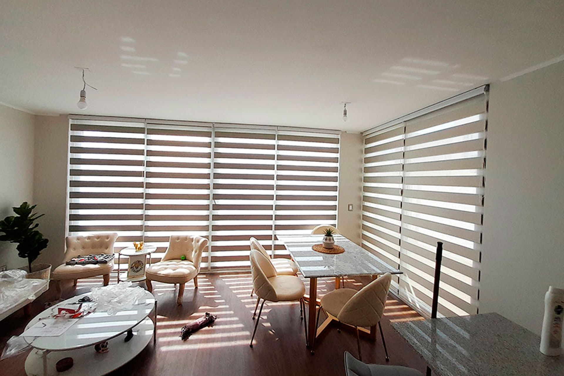 Trabajamos con una amplia variedad de modelos, colores y telas, incluyendo roller screen, blackout y dúo, adaptandonos a todo tipo de espacios residenciales y comerciales.